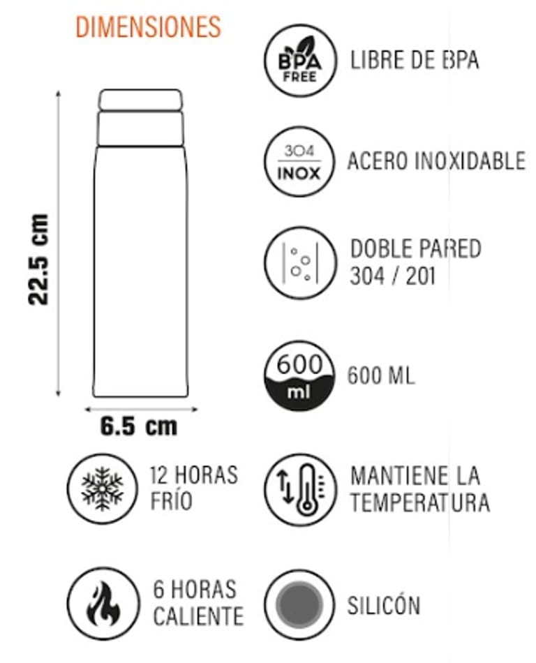 Botella térmica en distintos colores con capacidad de 500ml, perfecta para mantener tus bebidas frías o calientes por horas. Cuenta con un área de impresión de 12x3.5 cm, ideal para personalizar con tu logo o mensaje especial. Elaborada con materiales duraderos y diseño moderno para acompañarte a donde vayas.